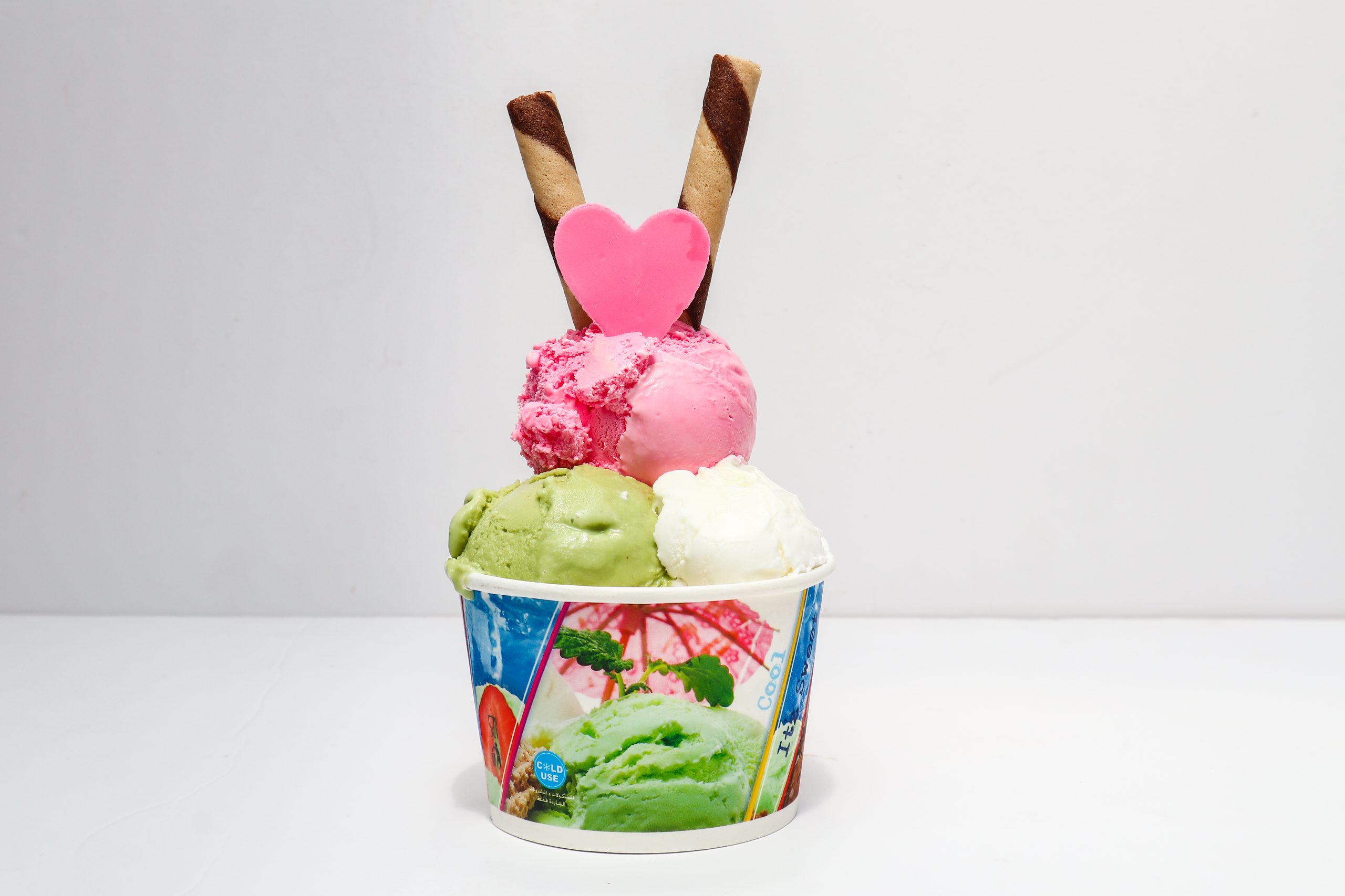 A variety of ice cream flavors are included in our menu.Our various colorful toppings and sauces would make someone’s day special.